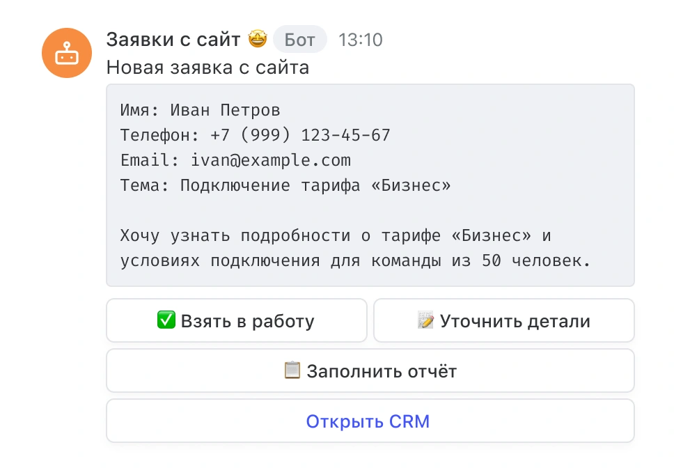 Бот позволяет работать с вебхуками, кнопками и формами в Пачке. Подробнее в разделах Входящие вебхуки, Исходящие вебхуки, Кнопки в сообщениях, Формы и Разворачивание ссылок.