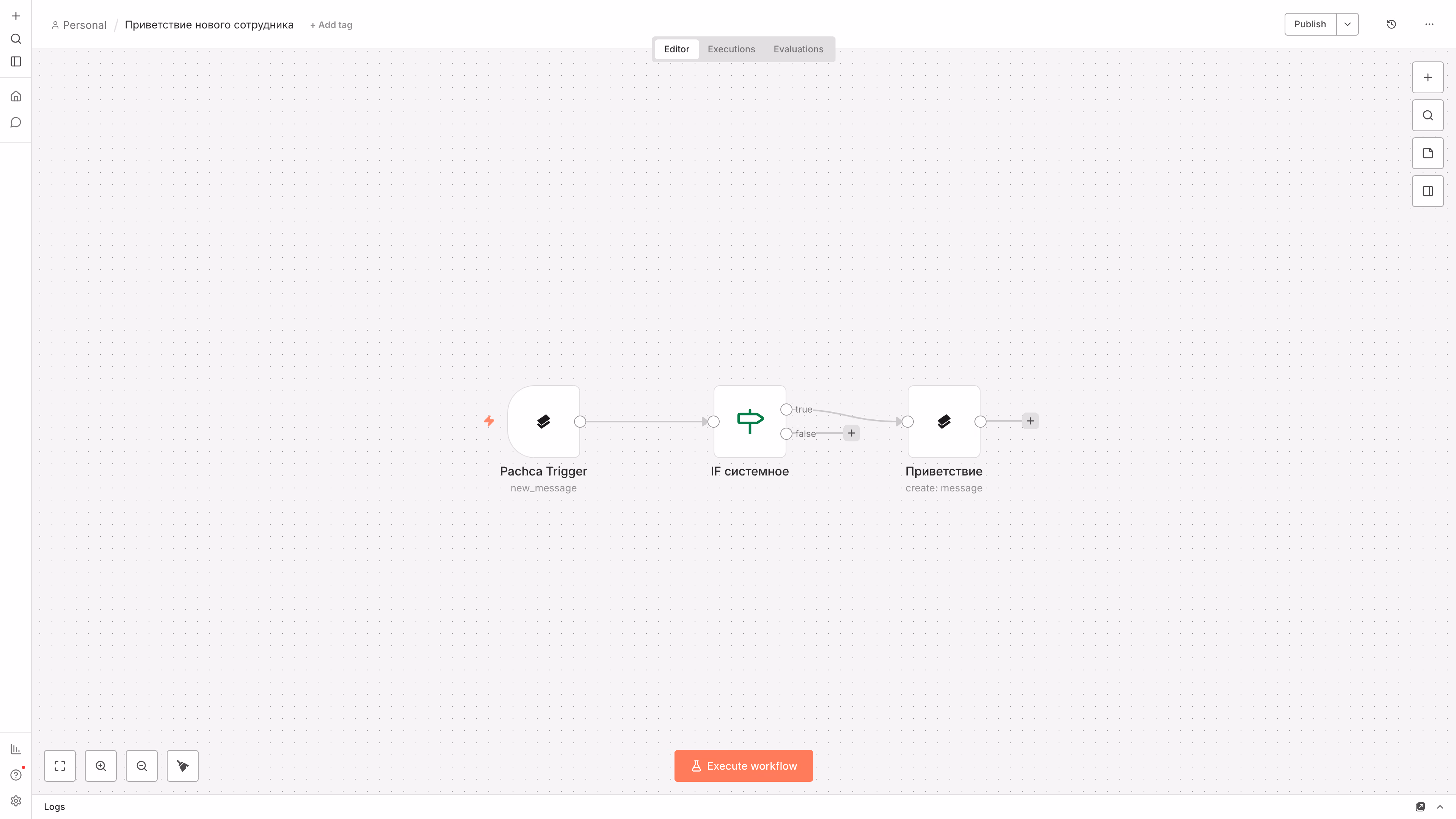 user_joined) - Pachca (Message > Create) — отправка приветствия в тот же чат